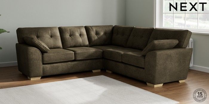 7.2.10 Buy Stamford Buttoned Back Medium Corner Sofa - Universal Plush Chenille Moss Green Large Square Angle - Light from the Laura Ashley online shop Click here to use our website with more accessibility support, for example screen readers