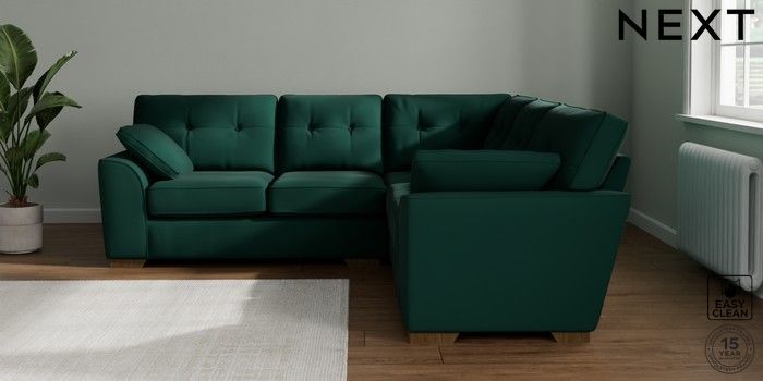 7.2.10 Buy Stamford Buttoned Back Medium Corner Sofa - Universal Plush Velvet Easy Clean Bottle Green Large Square Angle - Mid from the Laura Ashley online shop Click here to use our website with more accessibility support, for example screen readers