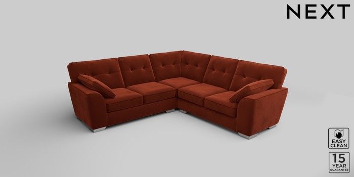 6.12.1 Buy Stamford Buttoned Back Medium Corner Sofa - Universal Plush Velvet Easy Clean Ginger Orange Large Square Angle - Chrome Metal from the Laura Ashley online shop Click here to use our website with more accessibility support, for example screen readers