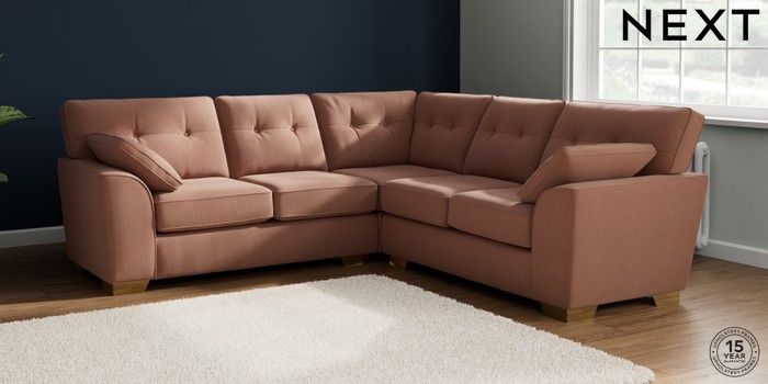 7.2.6 Buy Stamford Buttoned Back Medium Corner Sofa - Universal Relaxed Linen Look Light Rust Brown Large Square Angle - Brushed Brass from the Laura Ashley online shop Click here to use our website with more accessibility support, for example screen readers