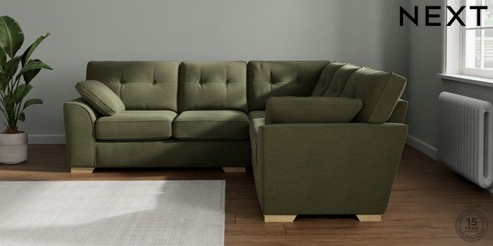 7.2.10 Buy Stamford Buttoned Back Medium Corner Sofa - Universal Ripple Chenille Mid Moss Green Large Square Angle - Light from the Laura Ashley online shop Click here to use our website with more accessibility support, for example screen readers