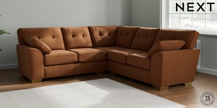 7.2.10 Buy Stamford Buttoned Back Medium Corner Sofa - Universal Ripple Chenille Mid Rust Brown Large Square Angle - Brushed Brass from the Laura Ashley online shop Click here to use our website with more accessibility support, for example screen readers