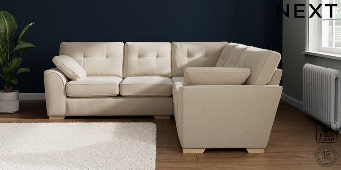 7.2.10 Buy Stamford Buttoned Back Medium Corner Sofa - Universal Tweedy Blend Easy Clean Oyster Large Square Angle - Light from the Laura Ashley online shop Click here to use our website with more accessibility support, for example screen readers