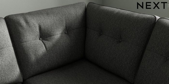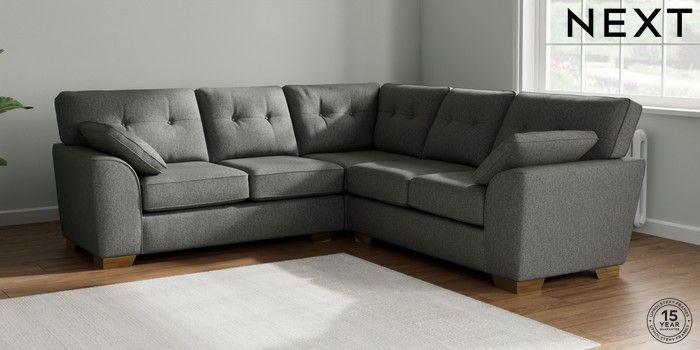 7.2.10 Buy Stamford Buttoned Back Medium Corner Sofa - Universal Tweedy Chenille Dark Grey Large Square Angle - Brushed Brass from the Laura Ashley online shop Click here to use our website with more accessibility support, for example screen readers