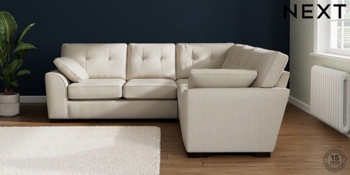 7.2.10 Buy Stamford Buttoned Back Medium Corner Sofa - Universal Tweedy Chenille Oyster Large Square Angle - Dark from the Laura Ashley online shop Click here to use our website with more accessibility support, for example screen readers