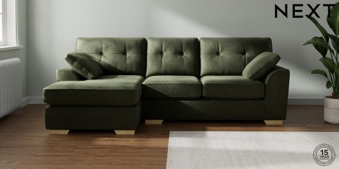 7.2.10 Buy Stamford Buttoned Back Medium Sofa Chaise - Left Hand Boucle Chenille Dark Moss Green Large Square Angle - Light from the Laura Ashley online shop Click here to use our website with more accessibility support, for example screen readers