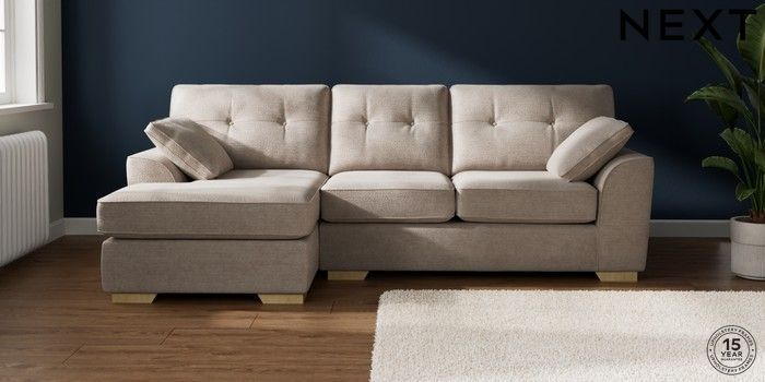 7.2.10 Buy Stamford Buttoned Back Medium Sofa Chaise - Left Hand Boucle Chenille Light Natural Large Square Angle - Light from the Laura Ashley online shop Click here to use our website with more accessibility support, for example screen readers