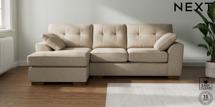 7.2.10 Buy Stamford Buttoned Back Medium Sofa Chaise - Left Hand Boucle Weave Easy Clean Dark Natural Large Square Angle - Mid from the Laura Ashley online shop Click here to use our website with more accessibility support, for example screen readers