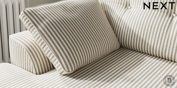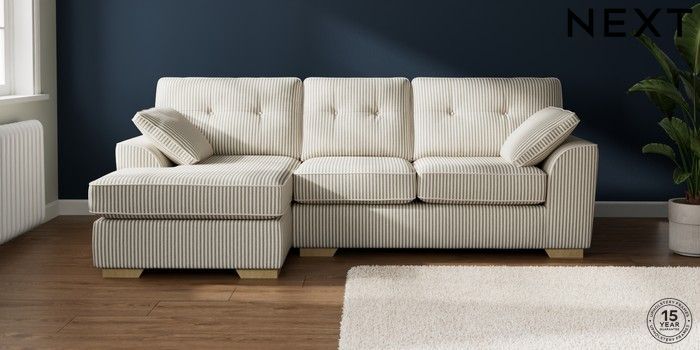 7.3.1 Buy Stamford Buttoned Back Medium Sofa Chaise - Left Hand Chenille Stripe Moss Green Large Square Angle - Light from the Laura Ashley online shop Click here to use our website with more accessibility support, for example screen readers