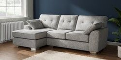 6.12.1 Buy Stamford Buttoned Back Medium Sofa Chaise - Left Hand Chunky Boucle Easy Clean Light Grey Large Square Angle - Chrome Metal from the Laura Ashley online shop Click here to use our website with more accessibility support, for example screen readers