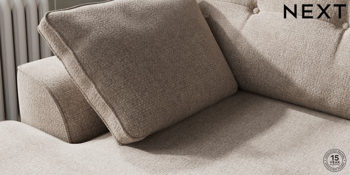 7.2.10 Buy Stamford Buttoned Back Medium Sofa Chaise - Left Hand Chunky Chenille Light Dove Large Square Angle - Brushed Brass from the Laura Ashley online shop Click here to use our website with more accessibility support, for example screen readers