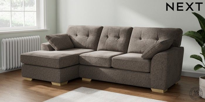 6.12.1 Buy Stamford Buttoned Back Medium Sofa Chaise - Left Hand Chunky Chenille Mink Brown Large Square Angle - Light from the Laura Ashley online shop Click here to use our website with more accessibility support, for example screen readers