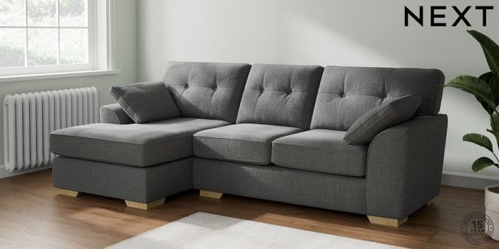7.2.10 Buy Stamford Buttoned Back Medium Sofa Chaise - Left Hand Chunky Texture Dark Grey Large Square Angle - Light from the Laura Ashley online shop Click here to use our website with more accessibility support, for example screen readers