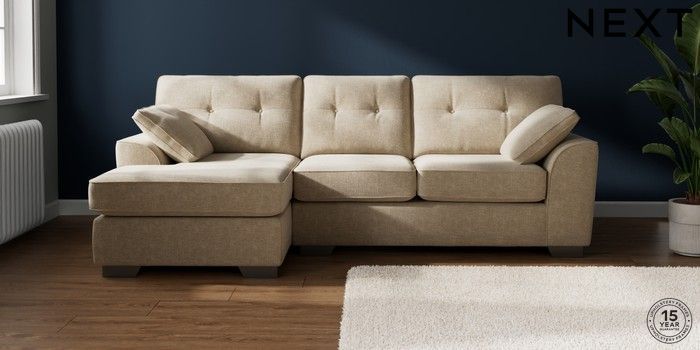 7.2.10 Buy Stamford Buttoned Back Medium Sofa Chaise - Left Hand Chunky Weave Cream Large Square Angle - Gunmetal from the Laura Ashley online shop Click here to use our website with more accessibility support, for example screen readers