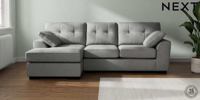 7.2.10 Buy Stamford Buttoned Back Medium Sofa Chaise - Left Hand Chunky Weave Mid Grey Large Square Angle - Dark from the Laura Ashley online shop Click here to use our website with more accessibility support, for example screen readers