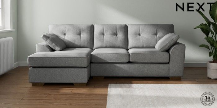 7.2.10 Buy Stamford Buttoned Back Medium Sofa Chaise - Left Hand Chunky Weave Mid Grey Large Square Angle - Mid from the Laura Ashley online shop Click here to use our website with more accessibility support, for example screen readers