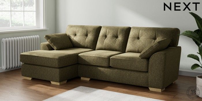 7.2.6 Buy Stamford Buttoned Back Medium Sofa Chaise - Left Hand Cotswold Chenille Dark Green Large Square Angle - Light from the Laura Ashley online shop Click here to use our website with more accessibility support, for example screen readers