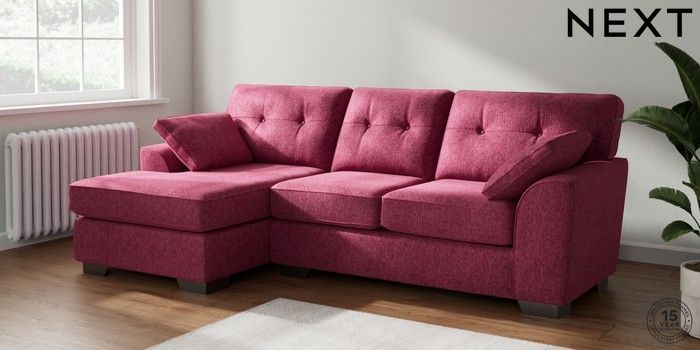 7.2.10 Buy Stamford Buttoned Back Medium Sofa Chaise - Left Hand Cotswold Chenille Dark Raspberry Pink Large Square Angle - Gunmetal from the Laura Ashley online shop Click here to use our website with more accessibility support, for example screen readers