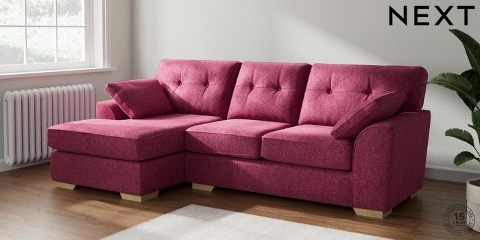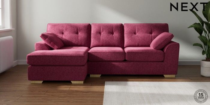 7.2.10 Buy Stamford Buttoned Back Medium Sofa Chaise - Left Hand Cotswold Chenille Dark Raspberry Pink Large Square Angle - Light from the Laura Ashley online shop Click here to use our website with more accessibility support, for example screen readers