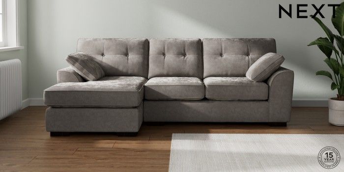 7.2.10 Buy Stamford Buttoned Back Medium Sofa Chaise - Left Hand Distressed Velour French Grey Large Square Angle - Dark from the Laura Ashley online shop Click here to use our website with more accessibility support, for example screen readers
