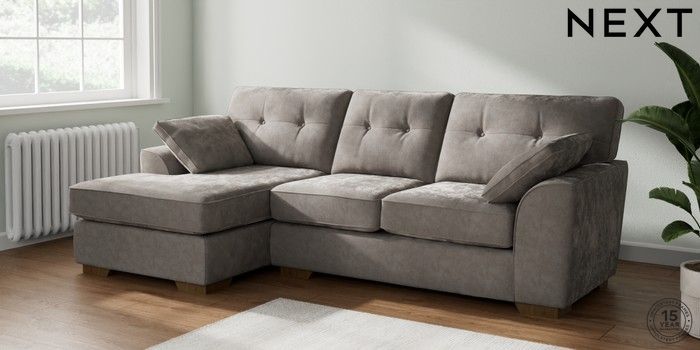 7.2.10 Buy Stamford Buttoned Back Medium Sofa Chaise - Left Hand Distressed Velour French Grey Large Square Angle - Mid from the Laura Ashley online shop Click here to use our website with more accessibility support, for example screen readers