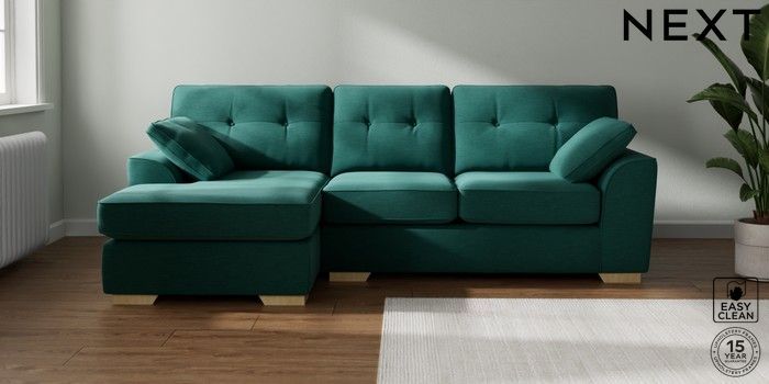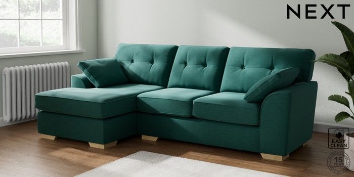 7.2.10 Buy Stamford Buttoned Back Medium Sofa Chaise - Left Hand Fine Chenille Easy Clean Dark Juniper Green Large Square Angle - Light from the Laura Ashley online shop Click here to use our website with more accessibility support, for example screen readers