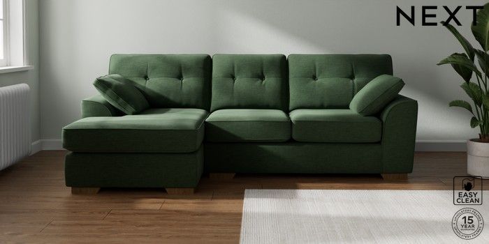 7.2.10 Buy Stamford Buttoned Back Medium Sofa Chaise - Left Hand Fine Chenille Easy Clean Mid Khaki Green Large Square Angle - Mid from the Laura Ashley online shop Click here to use our website with more accessibility support, for example screen readers