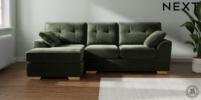 7.2.6 Buy Stamford Buttoned Back Medium Sofa Chaise - Left Hand Luxe Chenille Mid Green Large Square Angle - Light from the Laura Ashley online shop Click here to use our website with more accessibility support, for example screen readers