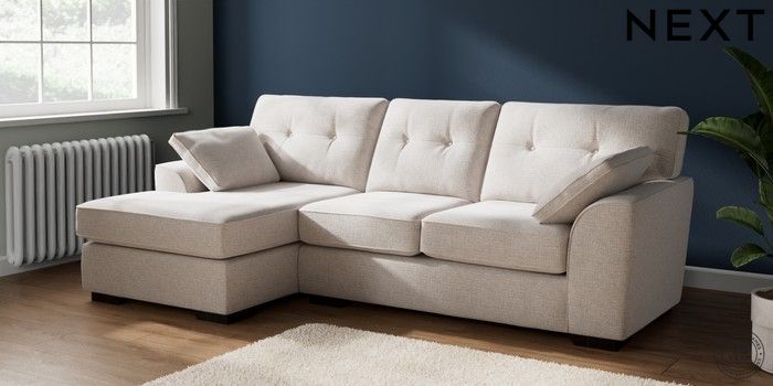 7.2.6 Buy Stamford Buttoned Back Medium Sofa Chaise - Left Hand Multi Weave Oyster Large Square Angle - Dark from the Laura Ashley online shop Click here to use our website with more accessibility support, for example screen readers