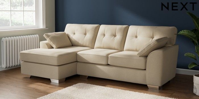 7.2.6 Buy Stamford Buttoned Back Medium Sofa Chaise - Left Hand Natural Mix Light Natural Large Square Angle - Chrome Metal from the Laura Ashley online shop Click here to use our website with more accessibility support, for example screen readers