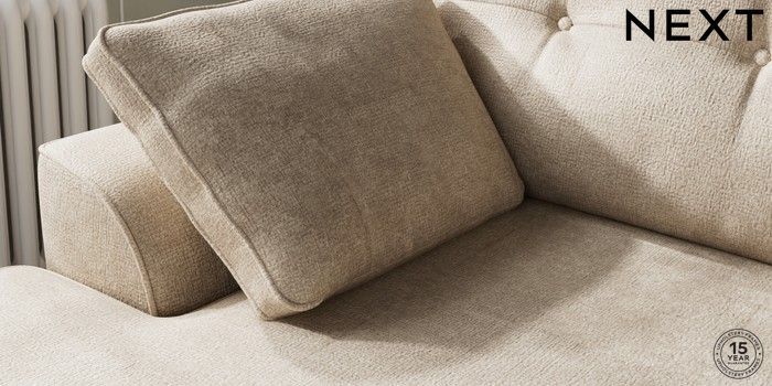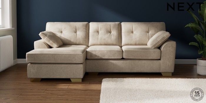 7.2.10 Buy Stamford Buttoned Back Medium Sofa Chaise - Left Hand Plush Chenille Light Natural Large Square Angle - Brushed Brass from the Laura Ashley online shop Click here to use our website with more accessibility support, for example screen readers