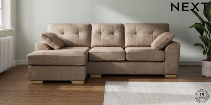 7.2.10 Buy Stamford Buttoned Back Medium Sofa Chaise - Left Hand Plush Chenille Mid Natural Large Square Angle - Light from the Laura Ashley online shop Click here to use our website with more accessibility support, for example screen readers