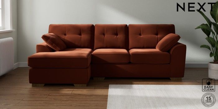 7.2.10 Buy Stamford Buttoned Back Medium Sofa Chaise - Left Hand Plush Velvet Easy Clean Ginger Orange Large Square Angle - Mid from the Laura Ashley online shop Click here to use our website with more accessibility support, for example screen readers