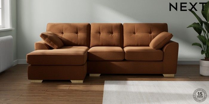 7.2.10 Buy Stamford Buttoned Back Medium Sofa Chaise - Left Hand Ripple Chenille Mid Rust Brown Large Square Angle - Light from the Laura Ashley online shop Click here to use our website with more accessibility support, for example screen readers