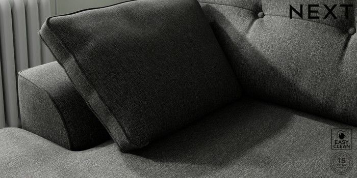 7.2.10 Buy Stamford Buttoned Back Medium Sofa Chaise - Left Hand Tweedy Blend Easy Clean Charcoal Grey Large Square Angle - Dark from the Laura Ashley online shop Click here to use our website with more accessibility support, for example screen readers