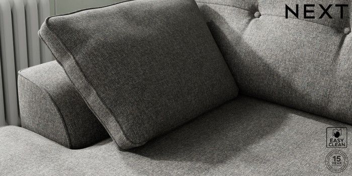 7.2.10 Buy Stamford Buttoned Back Medium Sofa Chaise - Left Hand Tweedy Blend Easy Clean Dark Grey Large Square Angle - Mid from the Laura Ashley online shop Click here to use our website with more accessibility support, for example screen readers