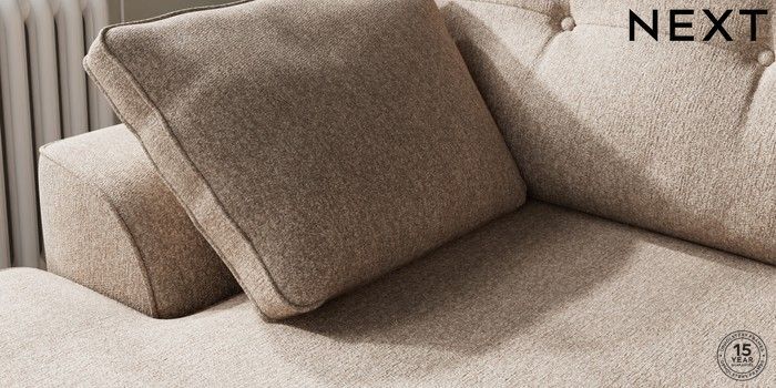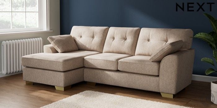 7.2.10 Buy Stamford Buttoned Back Medium Sofa Chaise - Left Hand Tweedy Chenille Mid Natural Large Square Angle - Brushed Brass from the Laura Ashley online shop Click here to use our website with more accessibility support, for example screen readers