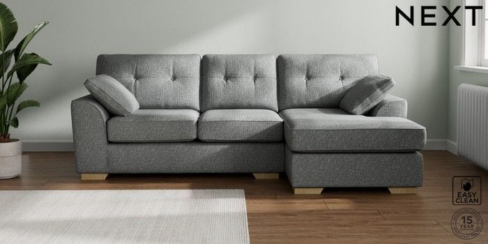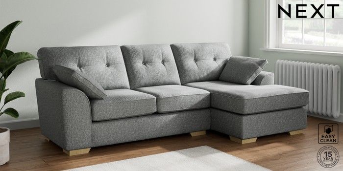 7.2.10 Buy Stamford Buttoned Back Medium Sofa Chaise - Right Hand Chunky Boucle Easy Clean Mid Grey Large Square Angle - Light from the Laura Ashley online shop Click here to use our website with more accessibility support, for example screen readers
