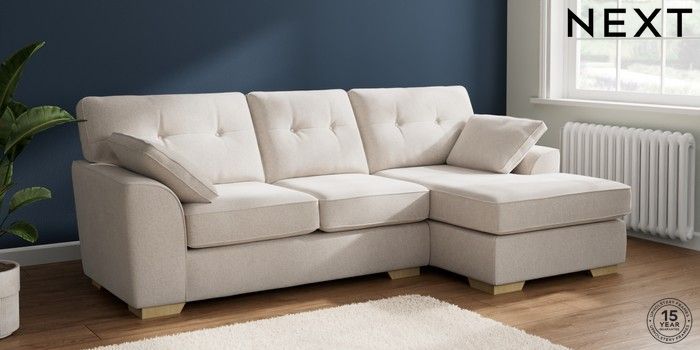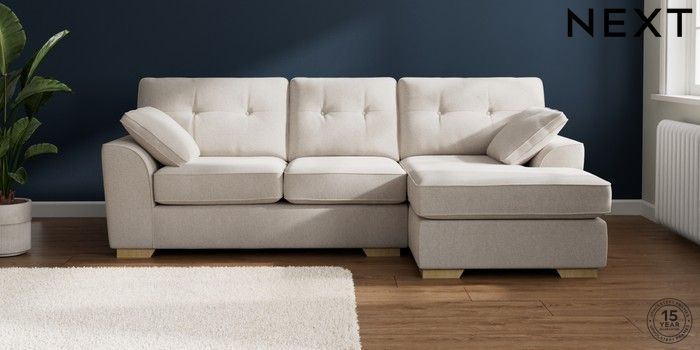 7.2.10 Buy Stamford Buttoned Back Medium Sofa Chaise - Right Hand Chunky Chenille Oyster Large Square Angle - Light from the Laura Ashley online shop Click here to use our website with more accessibility support, for example screen readers