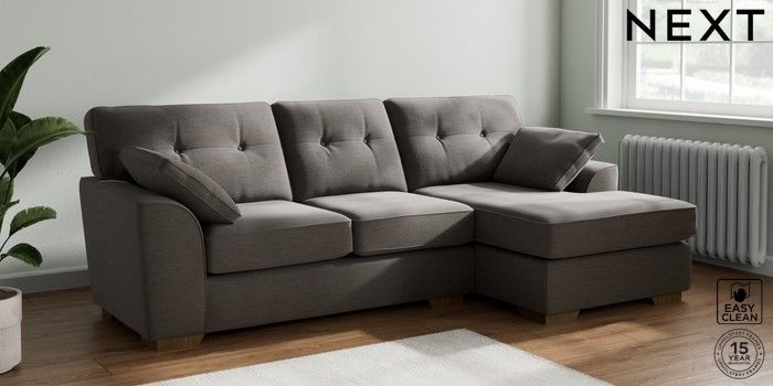 7.2.10 Buy Stamford Buttoned Back Medium Sofa Chaise - Right Hand Fine Chenille Easy Clean Dark Smoke Grey Large Square Angle - Mid from the Laura Ashley online shop Click here to use our website with more accessibility support, for example screen readers