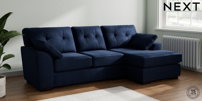 7.2.6 Buy Stamford Buttoned Back Medium Sofa Chaise - Right Hand Luxe Chenille Navy Blue Large Square Angle - Dark from the Laura Ashley online shop Click here to use our website with more accessibility support, for example screen readers