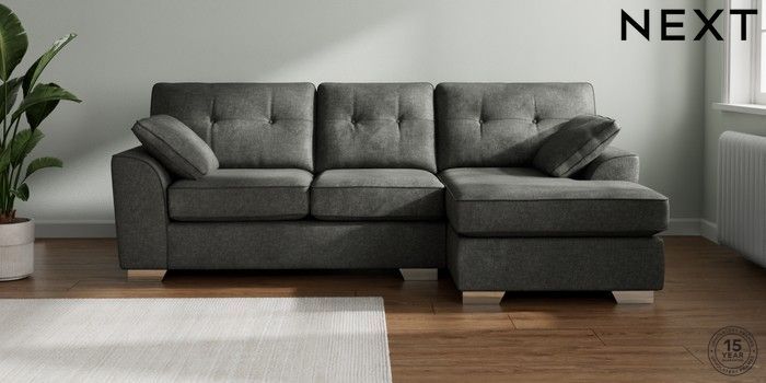 7.2.10 Buy Stamford Buttoned Back Medium Sofa Chaise - Right Hand Plush Chenille Dark Grey Large Square Angle - Chrome Metal from the Laura Ashley online shop Click here to use our website with more accessibility support, for example screen readers