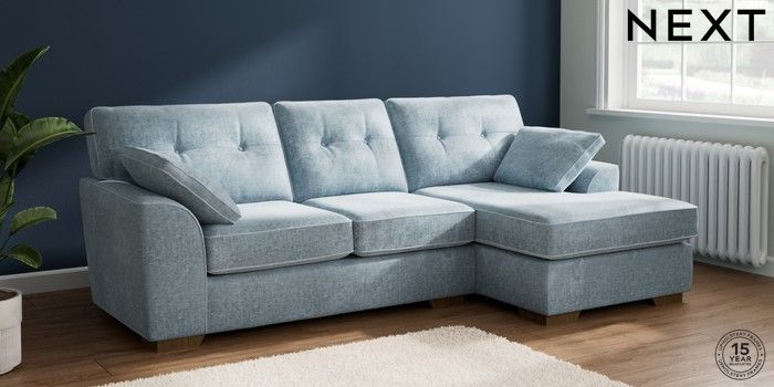 7.2.6 Buy Stamford Buttoned Back Medium Sofa Chaise - Right Hand Plush Chenille Light Blue Large Square Angle - Mid from the Laura Ashley online shop Click here to use our website with more accessibility support, for example screen readers