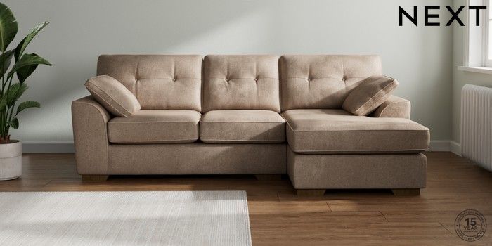 7.2.10 Buy Stamford Buttoned Back Medium Sofa Chaise - Right Hand Plush Chenille Mid Natural Large Square Angle - Mid from the Laura Ashley online shop Click here to use our website with more accessibility support, for example screen readers