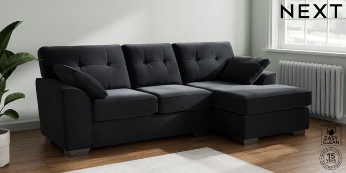 7.2.6 Buy Stamford Buttoned Back Medium Sofa Chaise - Right Hand Plush Velvet Easy Clean Charcoal Grey Large Square Angle - Gunmetal from the Laura Ashley online shop Click here to use our website with more accessibility support, for example screen readers