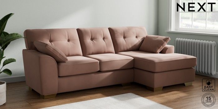 7.2.6 Buy Stamford Buttoned Back Medium Sofa Chaise - Right Hand Plush Velvet Easy Clean Mid Natural Large Square Angle - Brushed Brass from the Laura Ashley online shop Click here to use our website with more accessibility support, for example screen readers