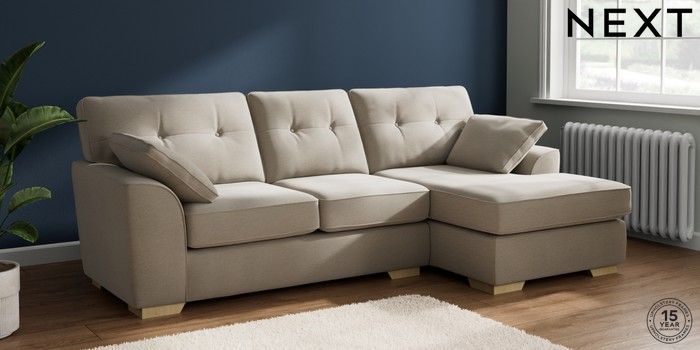 7.2.10 Buy Stamford Buttoned Back Medium Sofa Chaise - Right Hand Ripple Chenille Light Natural Large Square Angle - Light from the Laura Ashley online shop Click here to use our website with more accessibility support, for example screen readers