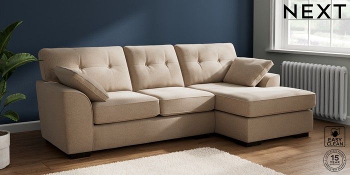 7.2.10 Buy Stamford Buttoned Back Medium Sofa Chaise - Right Hand Tweedy Blend Easy Clean Light Dove Natural Large Square Angle - Dark from the Laura Ashley online shop Click here to use our website with more accessibility support, for example screen readers
