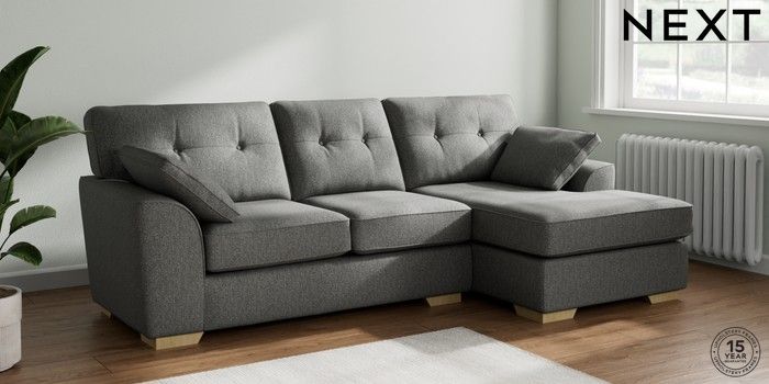 7.2.10 Buy Stamford Buttoned Back Medium Sofa Chaise - Right Hand Tweedy Chenille Dark Grey Large Square Angle - Light from the Laura Ashley online shop Click here to use our website with more accessibility support, for example screen readers