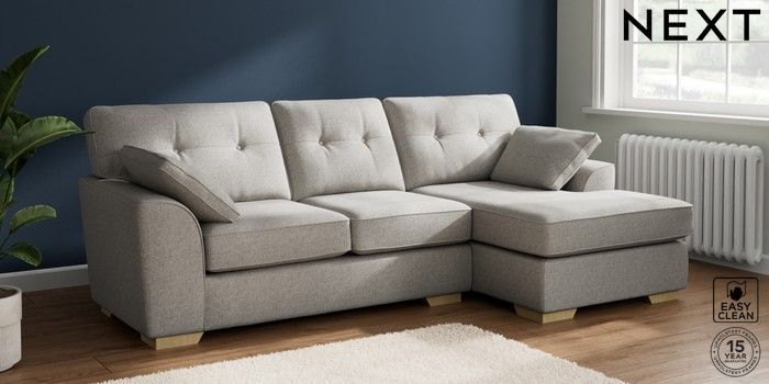 7.2.10 Buy Stamford Buttoned Back Medium Sofa Chaise - Right Hand Woven Chenille Easy Clean Light Grey Large Square Angle - Light from the Laura Ashley online shop Click here to use our website with more accessibility support, for example screen readers
